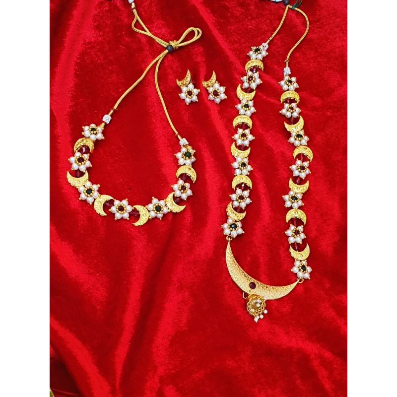 Package include: Handmade Long Chandrahaar, Handmade Small Chandrahaar and Handmade earrings